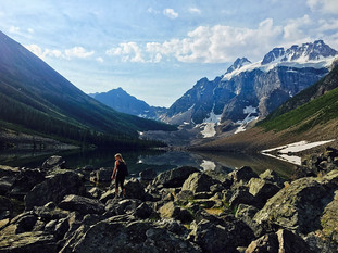Head to Lake Moraine, which has one of the most picturesque views! The parking lot is quite small so we were there by 7 am and managed to snag a spot but the lot was already filling up and people were parking on the street. Make sure to climb up the trail towards the left of the parking lot and Rockpile Trail for the best views of the bluest lake! We continued on the trail all the way to Consolation Lake. Along the way you are hiking through the tall trees until it opens to Consolation Lake and the surrounding mountains. There are massive rocks that you can climb around on.